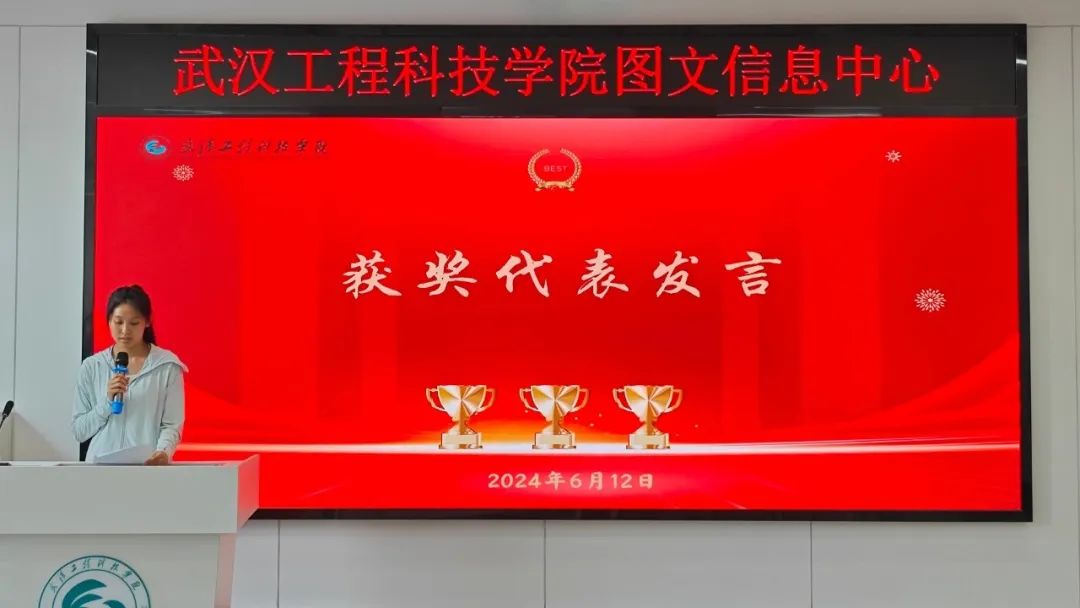 人文学院陈前锦同学作为获奖学生代表发言。她结合自己的阅读经历讲述了自己在阅读不同书籍时的感受。她说,书籍让她感受到了无尽的智慧与力量。每一本书都像是一个世界,让读者在其中遨游、成长。在未来的日子里,将继续保持对阅读的热爱和追求,让书籍成为自己人生旅途中不可或缺的伴侣。