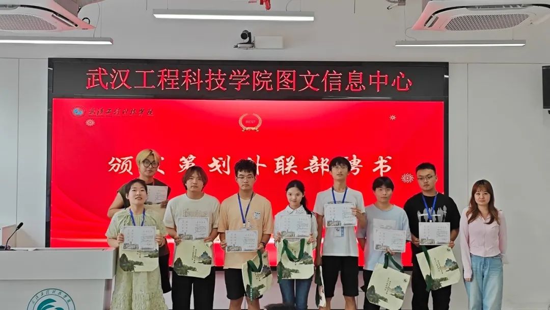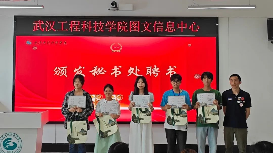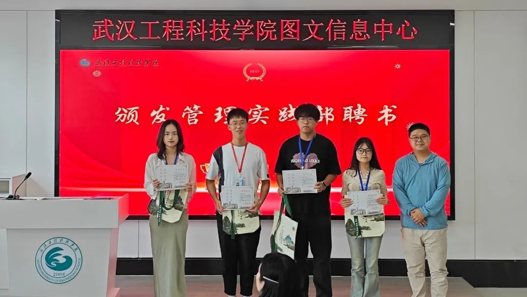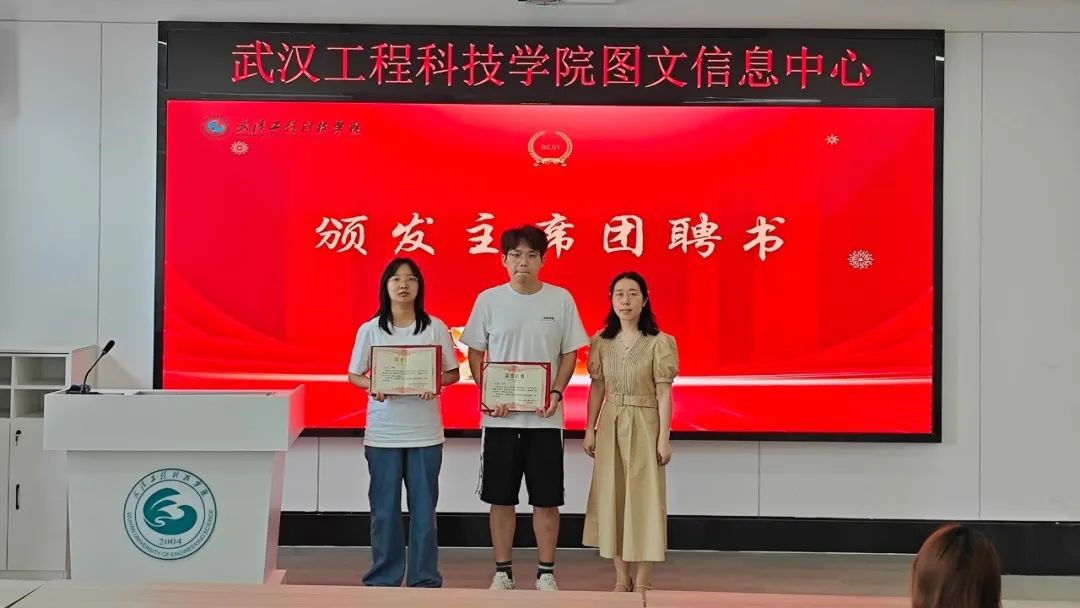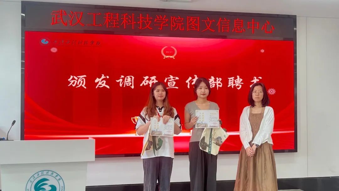 图文信息中心老师为第十六届图管会全体成员颁发聘书(即服务期满荣誉证书)。
