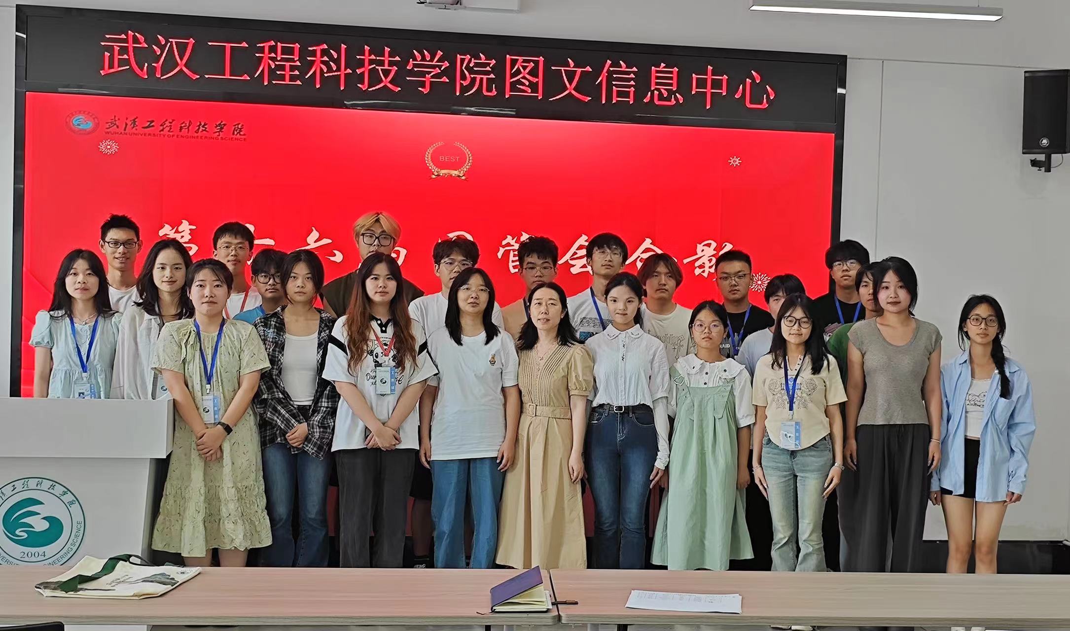 最后,图管会全体参会成员上台合影留念。图书馆2023-2024-2学期阅读推广活动总结表彰大会暨第十六届图管会全体大会圆满结束。