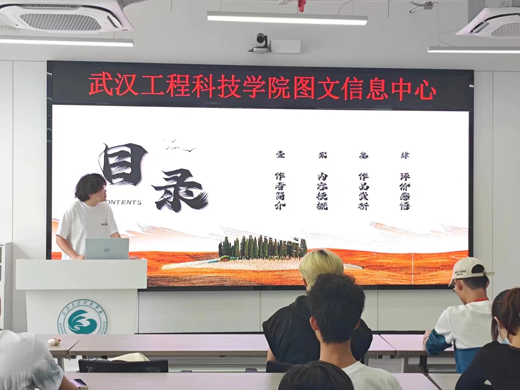 他从作者简介、作品内容梗概、作品赏析和阅读感悟这四个方面为在座同学做了精彩分享。他首先简要介绍了作者陈忠实的代表作以及他的作品思想;然后从创作背景、小说结构、故事情节、人物形象,循序渐进的将《白鹿原》的故事主要容呈现出来;并重点从作品主题、情景构建、艺术成就这三个角度来赏析这部作品;最后他分享了文章中的经典语录并结合实际畅谈了他自己在阅读这些经典所产生的阅读感悟。