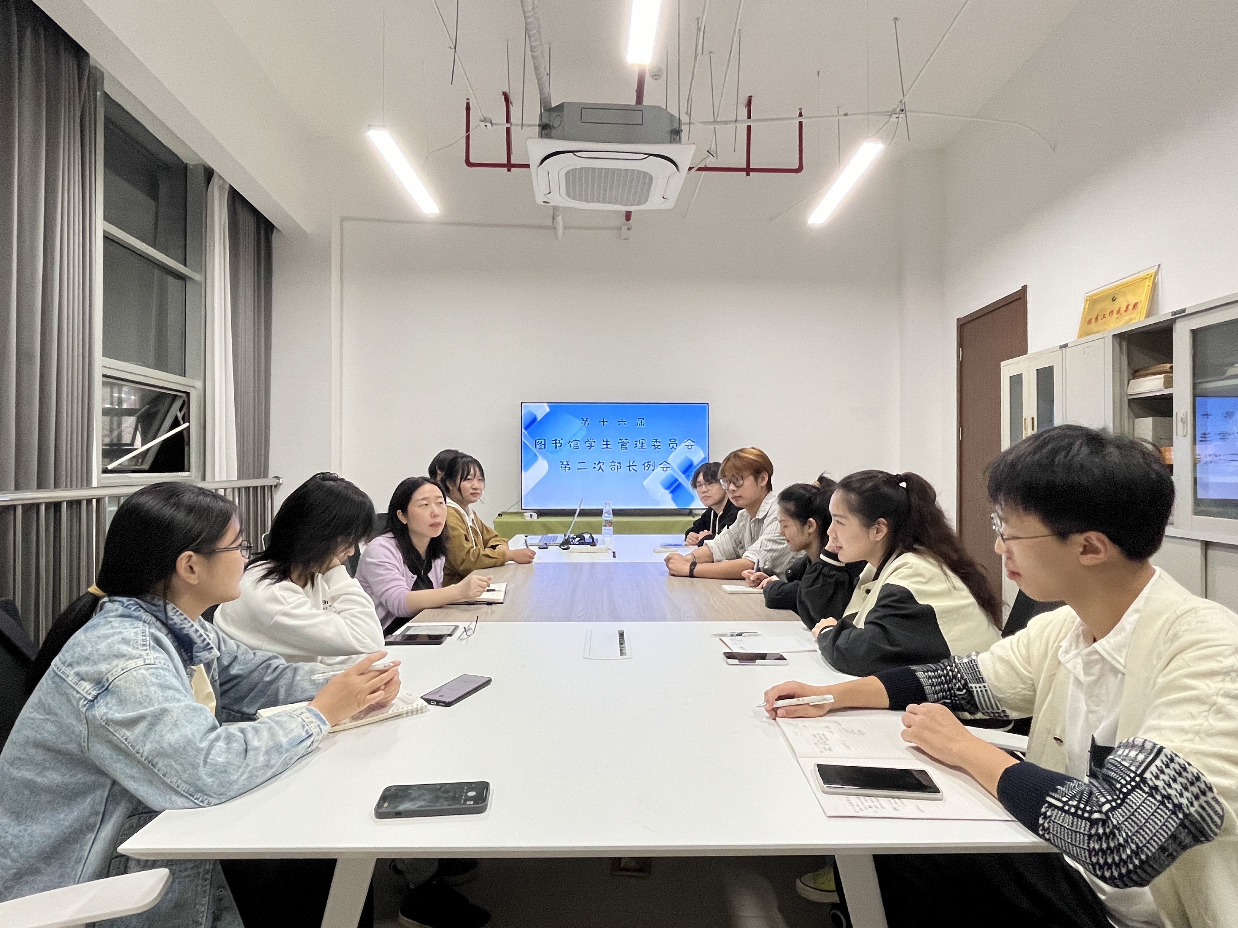 10月25号晚,第十六届图管会第二次学生干部例会在图书馆一区303会议室如期召开。本次会议汇集了图管会全体学生干部,共同探讨图管会的工作开展情况并讨论接下来的工作布置。图管会指导老师王会玲参加并主持本次会议。