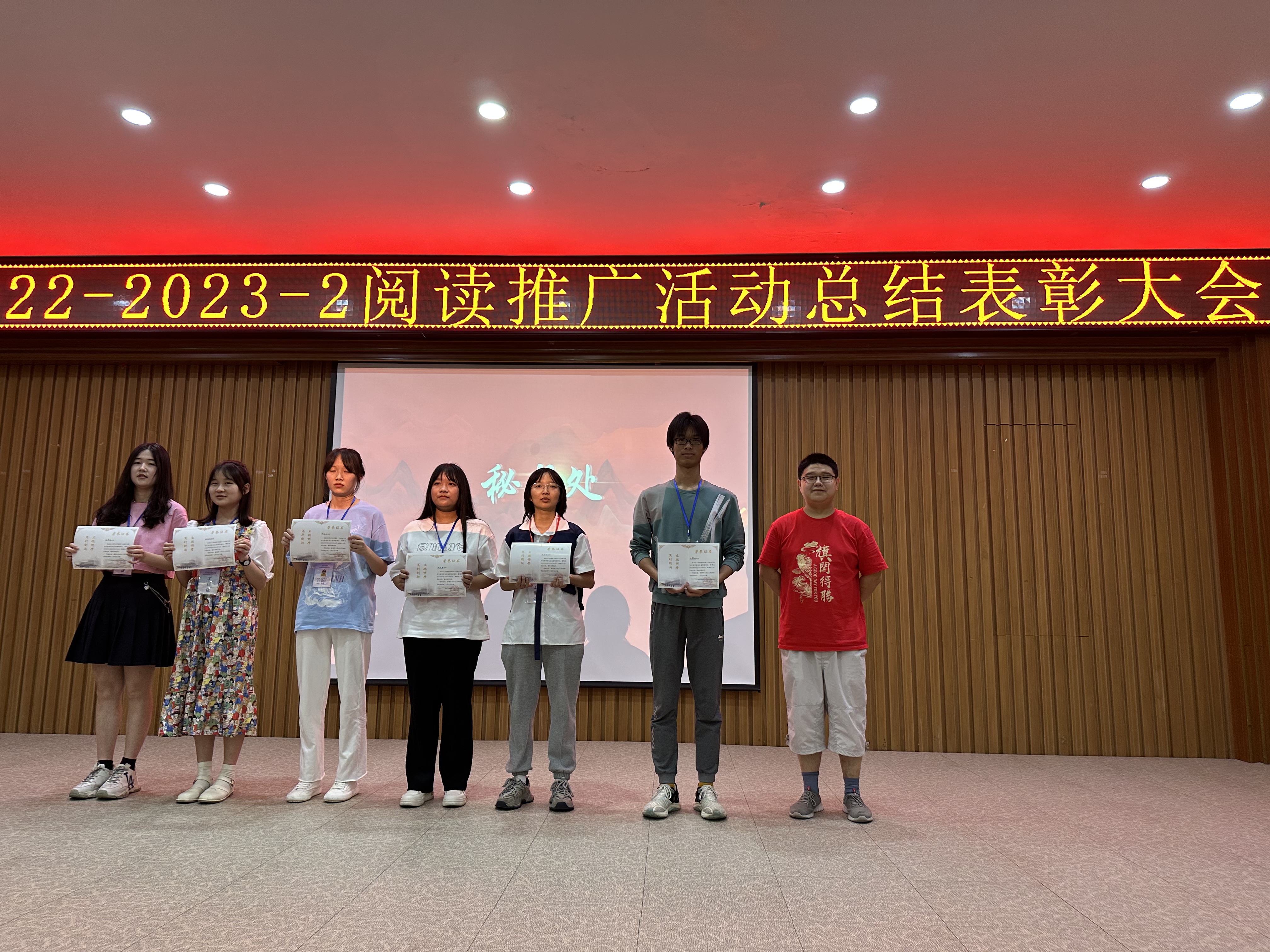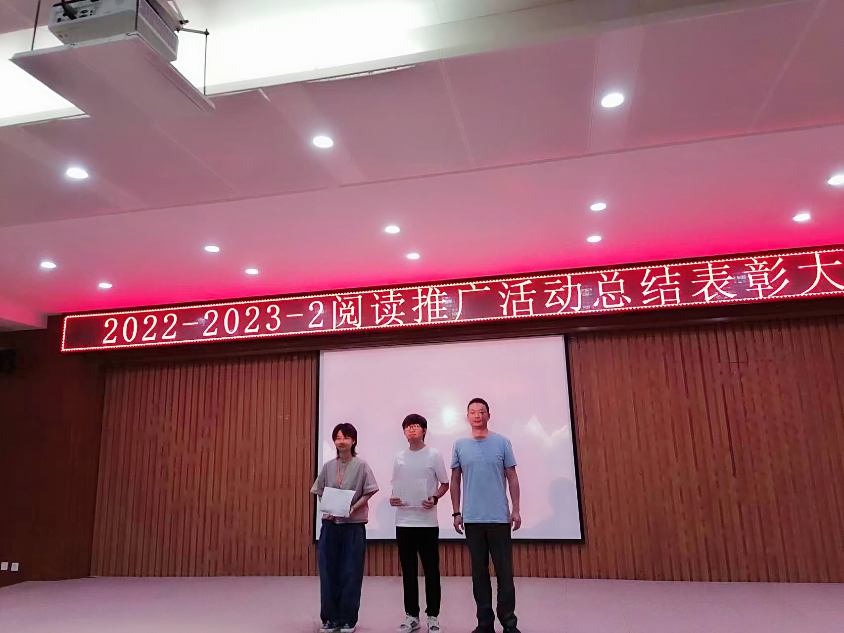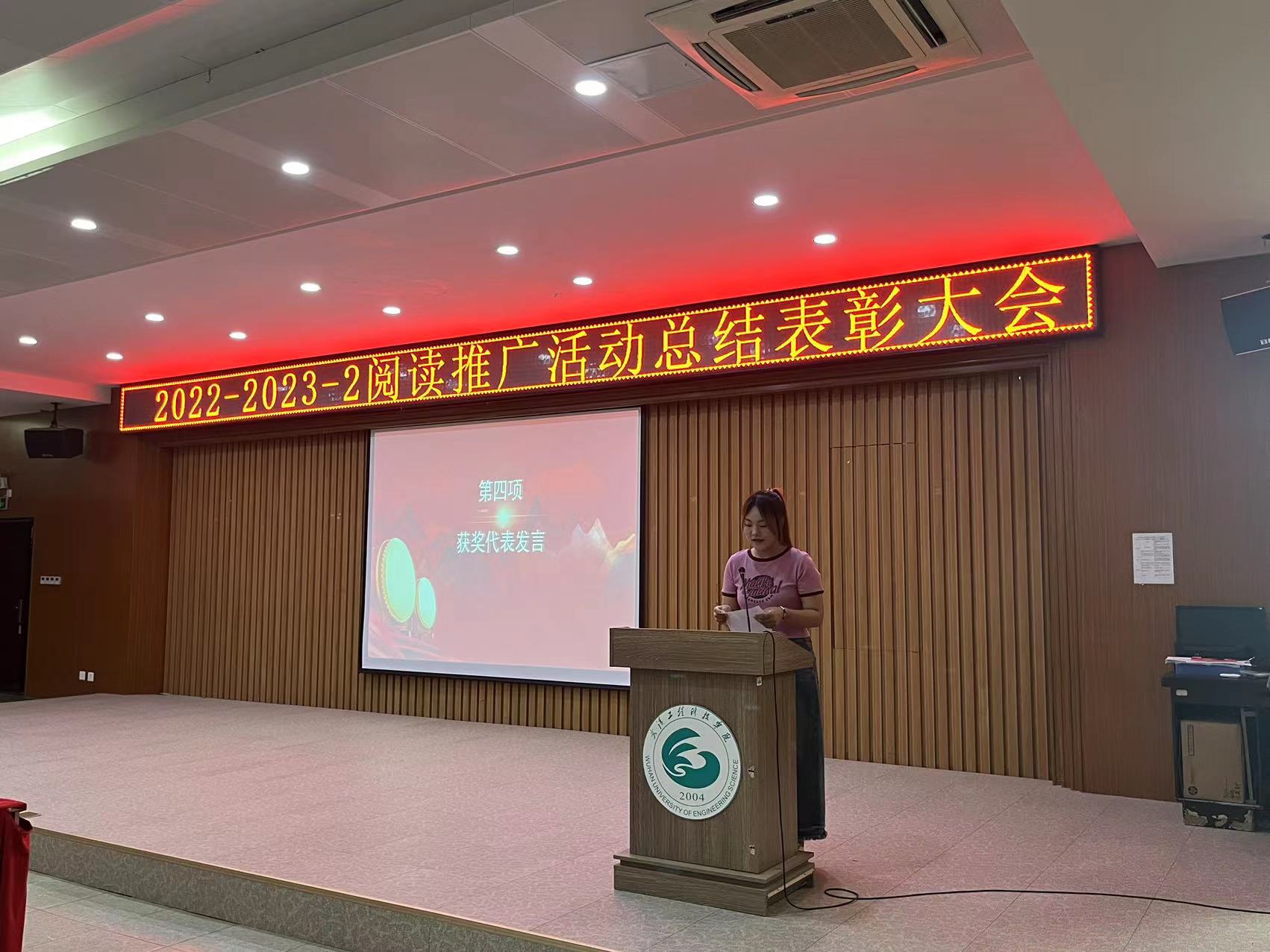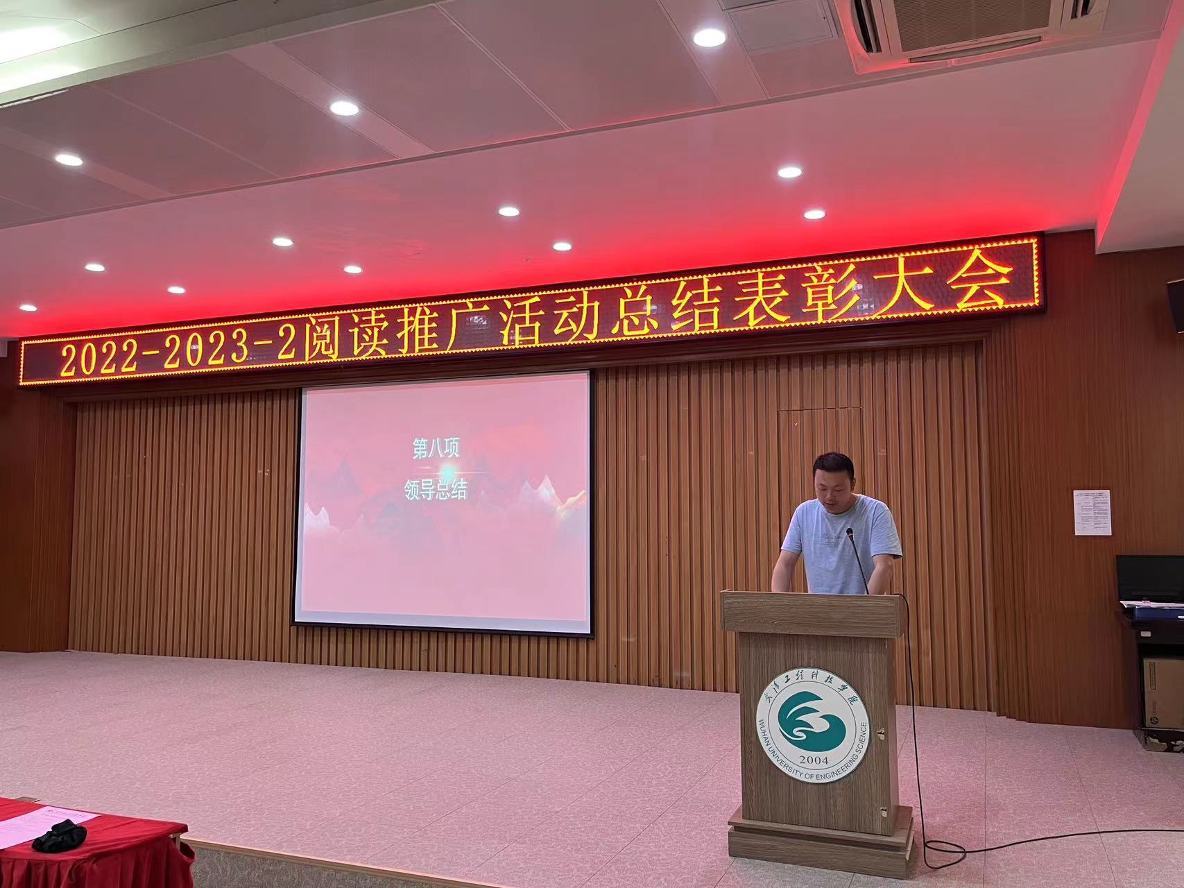 6月15日中午,图书馆2022-2023-2学期阅读推广活动总结表彰大会在事务中心311报告厅举行。出席此次会议的有图文信息中心主任周博、人文学院中文系主任杨敏艳老师、艺术与传媒学院播音与主持专业姚钧浩老师、图书馆学生管理委员会(以下简称图管会)指导老师王会玲老师以及图文信息中心图书馆业务的所有老师,会议由图管会秘书处毛涵竹同学主持。