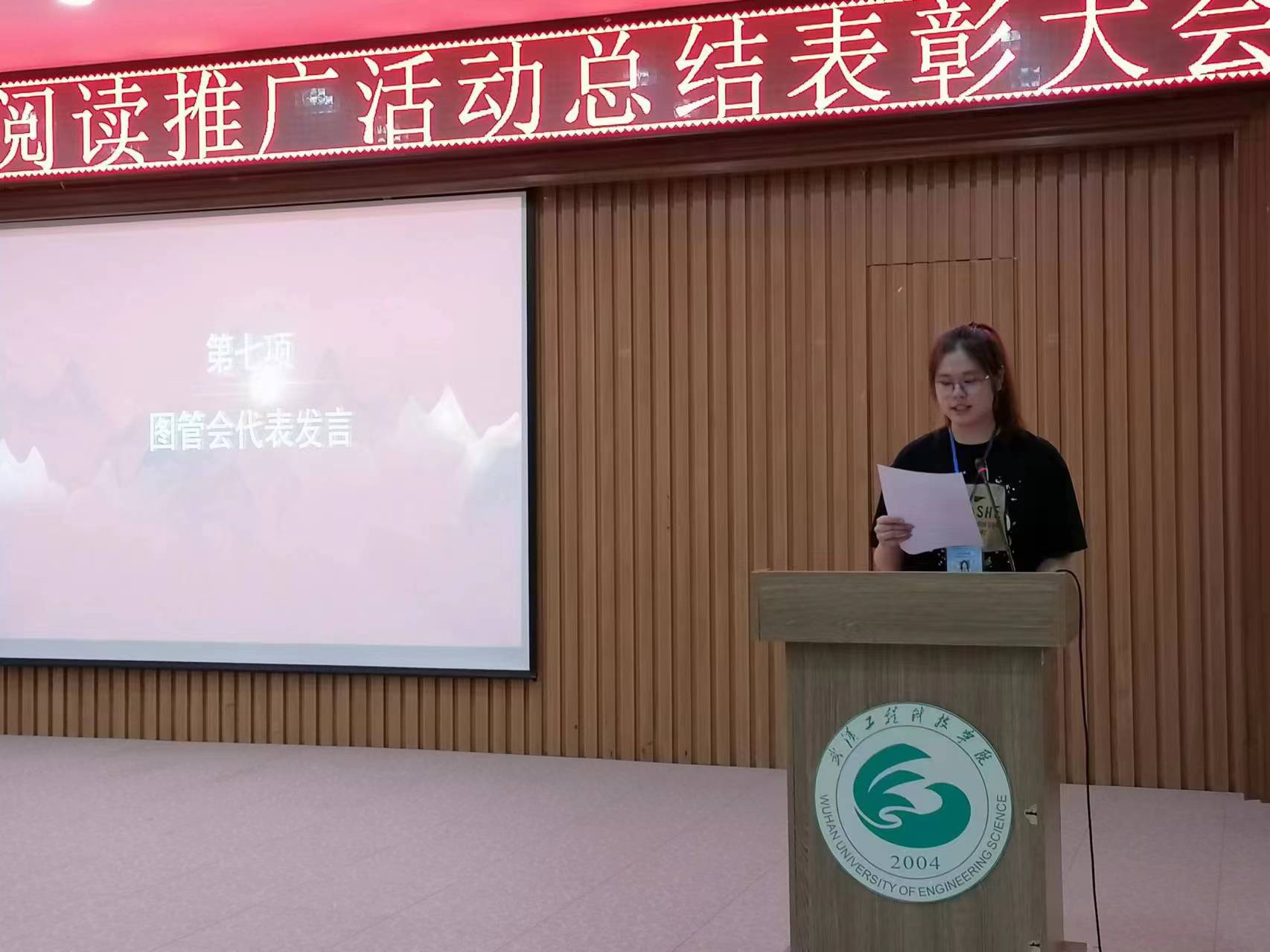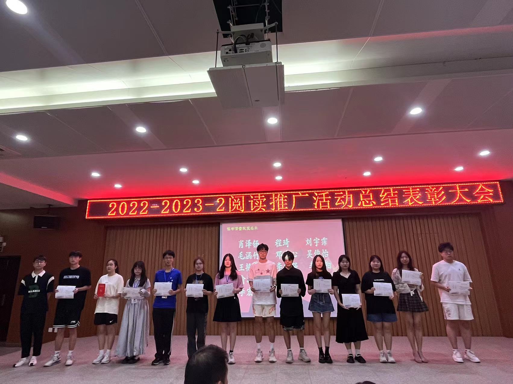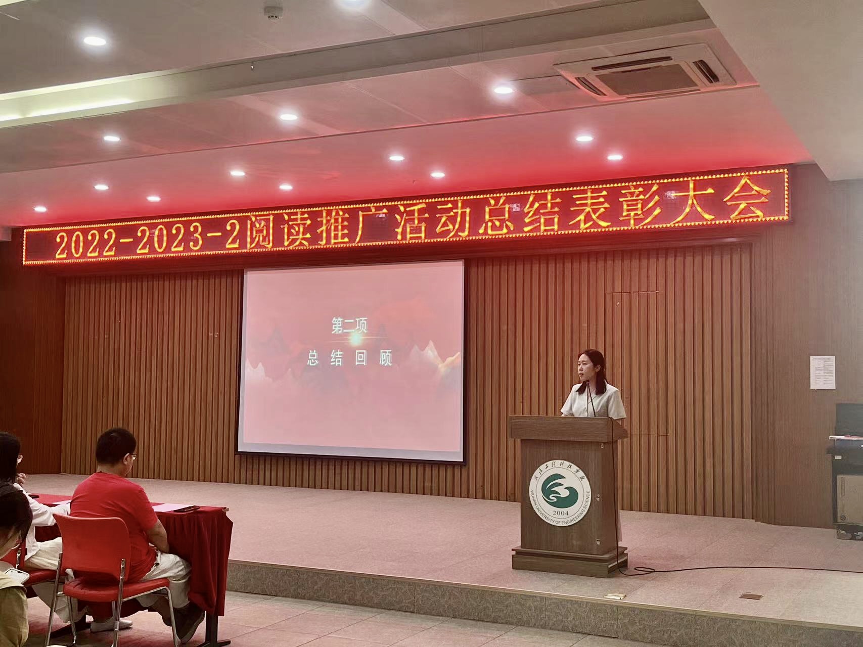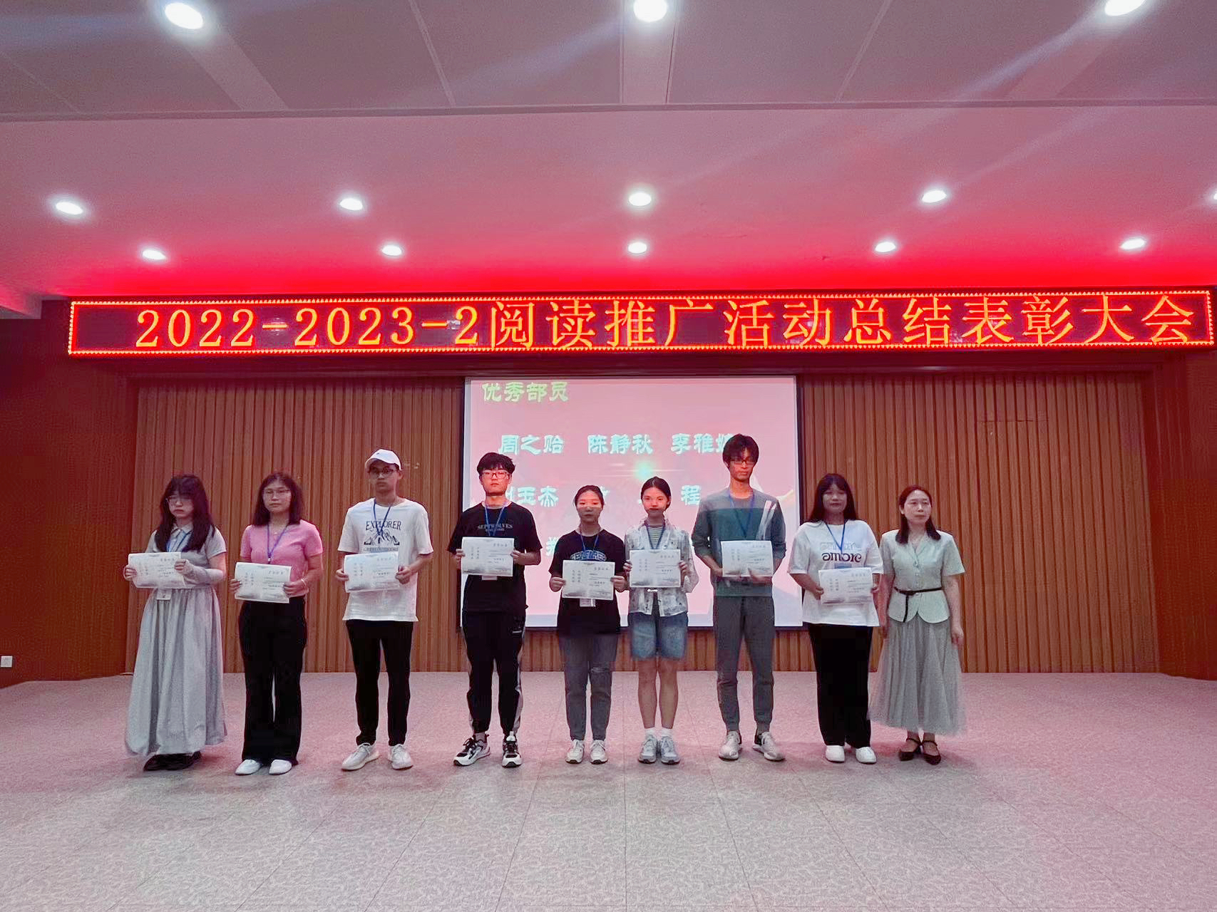 6月15日中午,图书馆2022-2023-2学期阅读推广活动总结表彰大会在事务中心311报告厅举行。出席此次会议的有图文信息中心主任周博、人文学院中文系主任杨敏艳老师、艺术与传媒学院播音与主持专业姚钧浩老师、图书馆学生管理委员会(以下简称图管会)指导老师王会玲老师以及图文信息中心图书馆业务的所有老师,会议由图管会秘书处毛涵竹同学主持。