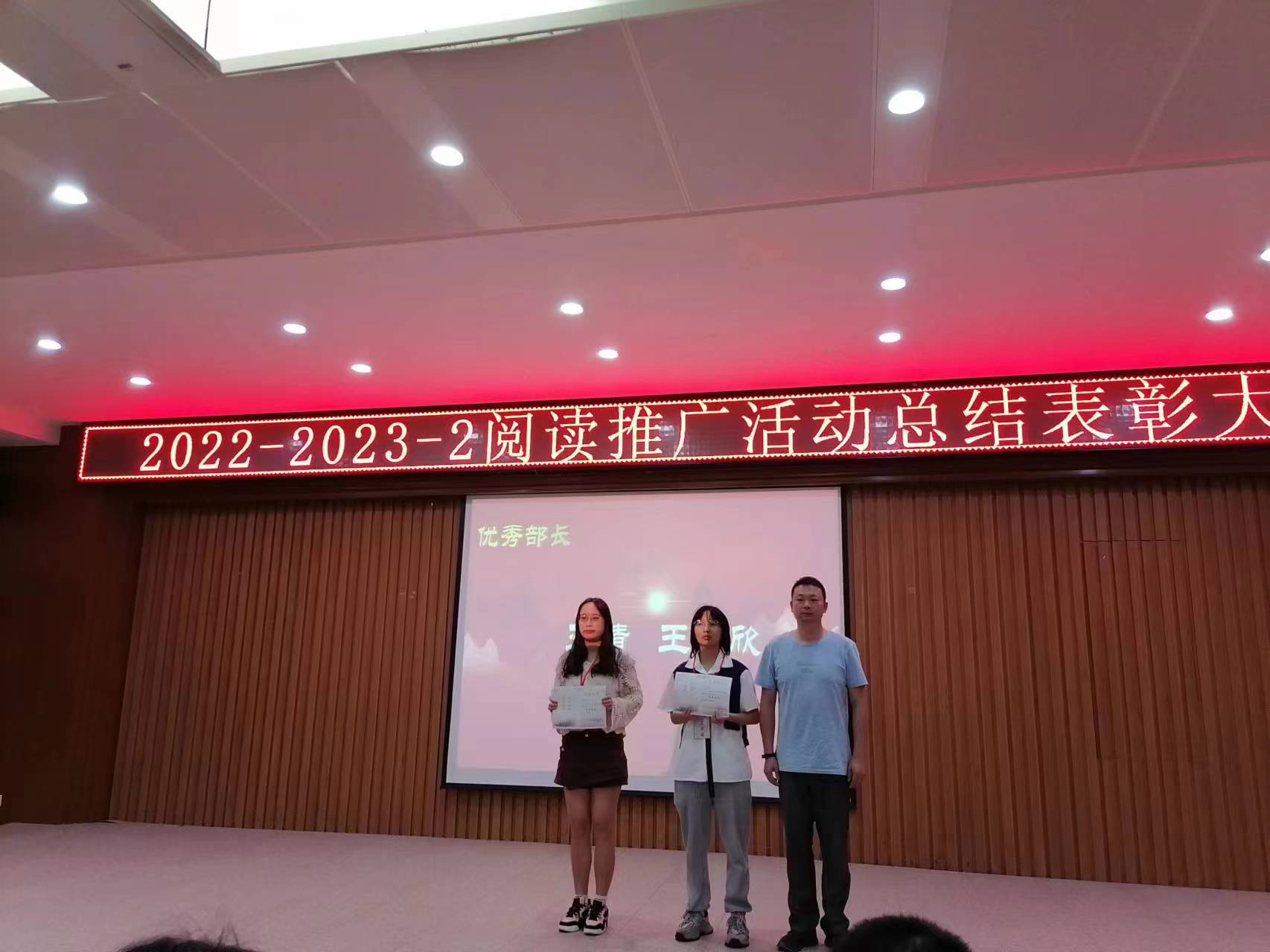 阅读活动颁奖结束后对第十五届图管会优秀部员和优秀部长进行了优秀表彰。同时图文信息中心老师还为图管会全体成员颁发了服务期满荣誉证书。