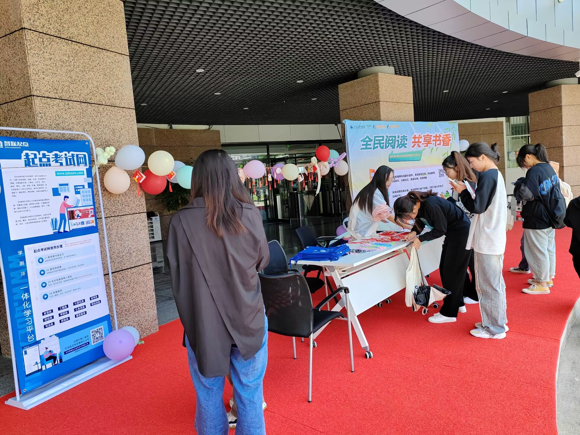本次活动采用线下推广的方式,在图书馆正门口布置宣传点,通过宣传展架,宣传册、关注公众号,现场解答读者咨询、互动答题等形式,宣传推广起点考研和起点考试资源。现场还设置了祝福长廊,邀请同学们写下自己的目标、对未来的期许等。活动期间,图书馆特别邀请了北京智联起点信息技术有限公司的刘静老师在活动现场针对读者的问题进行耐心解答,并为到场参加活动的学生提供趣味小礼品,丰富多样的宣传方式吸引了大批读者参加。