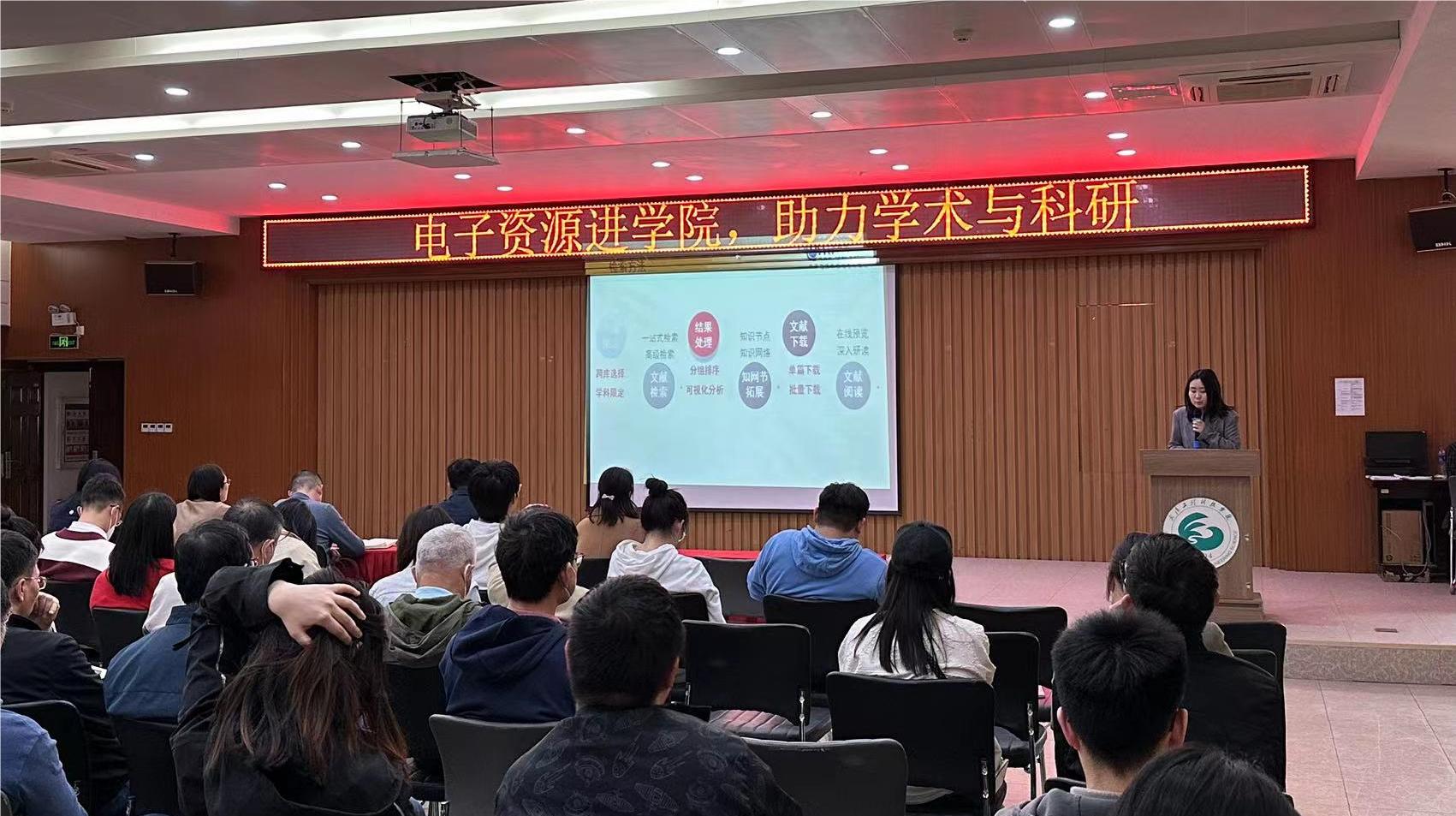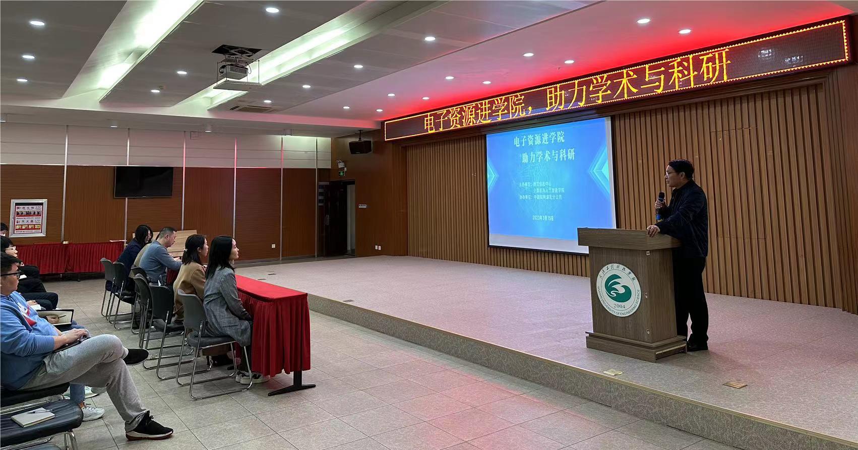 3月15日下午,图文信息中心和计算机与人工智能学院联合中国知网湖北分公司在学生事务中心311报告厅开展了“电子资源进学院,助力学术与科研”的培训讲座活动。图文信息中心主任周博、计算机与人工智能学院院长蔡之华、党总支书记钟晓星,中国知网湖北分公司销售经理胡驰以及计算机与人工智能学院全体教师参加了此次培训会议。