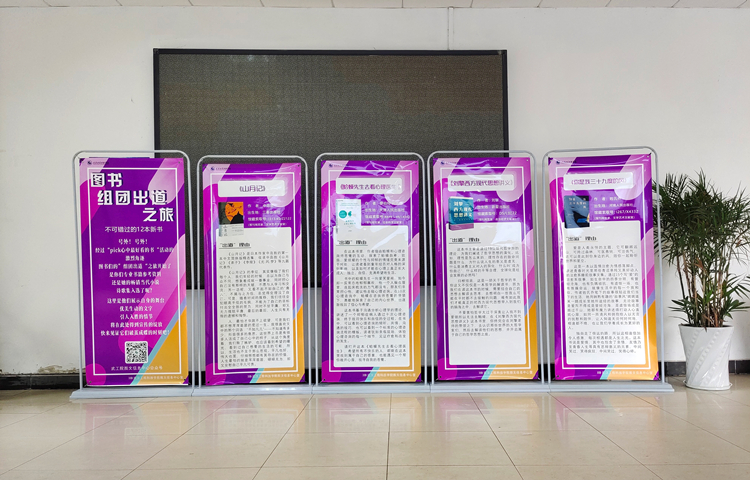 此次活动内容由“活动宣传”阶段、“活动展示”阶段两部分组成。该活动于6月11日进行线上宣传。结合读者们在“pick心中最好看的书”活动中的推荐下,图管会师生进行了认真的统计并最终选出了12本组团出道书目。不论是《被讨厌的勇气》这类心理学书籍还是《人类简史》这种社科类书籍,都可见读者们对阅读于现实生活方面的重视。活动举办阶段将以线上线下共同展示方式进行出道好书的介绍。线下展示于图书馆大厅、一号教学楼和二食堂进行展板展示。