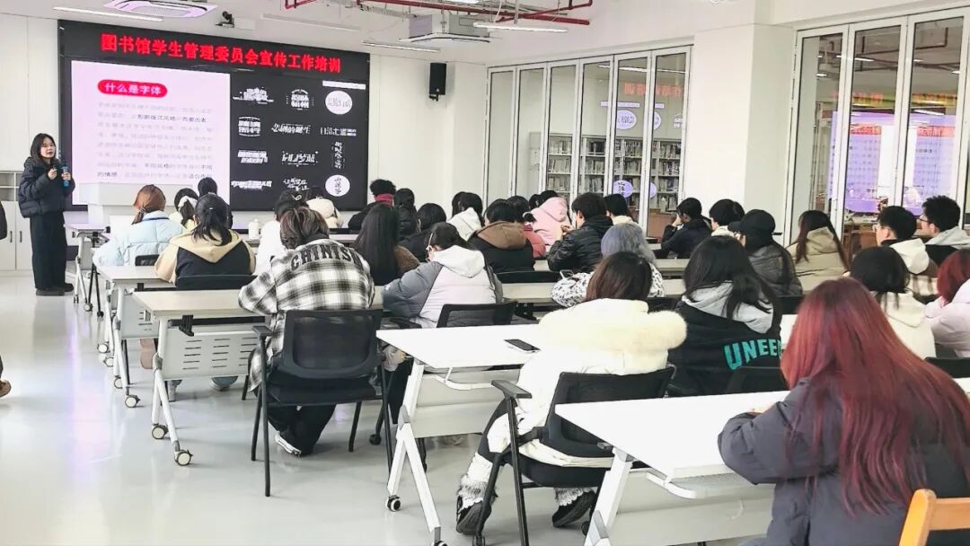 为全面提升图书馆学生管理委员会(以下简称“图管会”)成员宣传工作中的视觉设计水平,助力图书馆阅读活动的宣传推广,12月17日下午,图文信息中心联合艺术与传媒学院视觉传达设计系在图书馆一区三楼培训教室开展了以“排版入门:为宣传注入视觉秩序”为主题的培训讲座。本次培训特邀请艺术与传媒学院吕艺舒老师担任主讲,图管会指导老师王会玲主持。