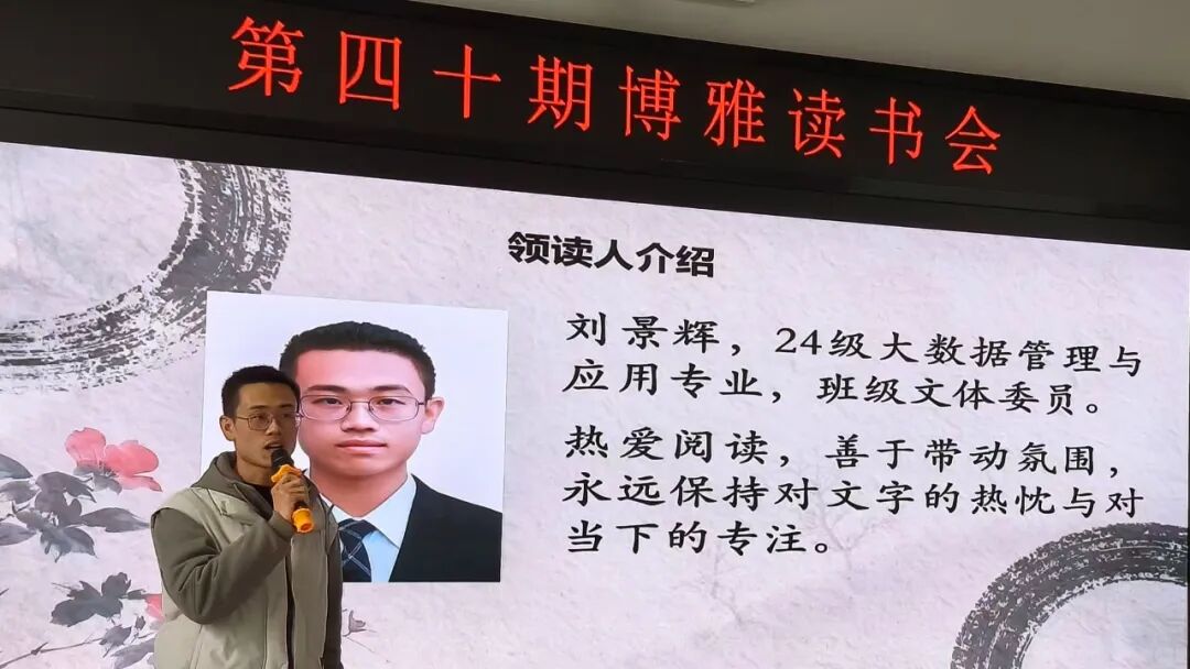 3月18日下午,由图文信息中心主办、图书馆学生管理委员会承办的第40期“博雅读书会”在图书馆一区三楼培训教室如期举行。本期我们共同走进老舍先生的经典剧作——《茶馆》,在裕泰茶馆的五十年光阴里,看尽人情冷暖,品读时代沧桑。本场读书会由经济与管理学院2024级大数据管理与应用专业学生刘景辉同学担任领读人,图管会管理实践部刘飞翔主持。