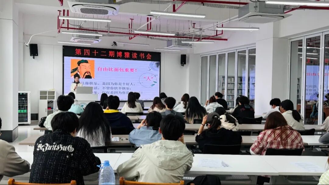 4月15日下午,由图文信息中心主办、图书馆学生管理委员会承办的第42期“博雅读书会”在图书馆一区三楼培训教室成功举办。本期,让我们一同走近中国古代文学史上一位与天地同游的灵魂——庄子,共读《庄子诠解》。本场读书会由人文学院中文系尹飘老师领读,图管会管理实践部刘佳一担任主持人。