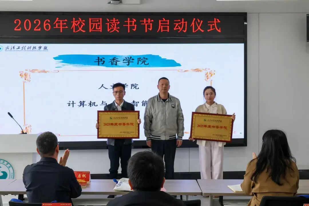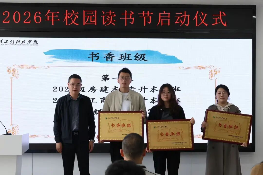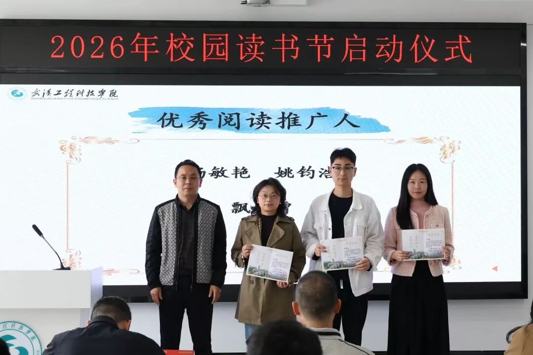 为鼓励学生拓展阅读视野、丰富精神世界,深入贯彻习近平总书记重要指示精神,4月23日上午,武汉工程科技学院2026年校园读书节启动仪式在图书馆一区三楼培训教室举行。图文信息中心主任周博,智能制造与建造学院党总支书记王启帆,经济与管理学院党总支书记胡美玲,人文学院党总支书记张冬琦,继续教育学院党总支书记刘占业出席仪式。各学院团总支书记、获奖教师代表及学生代表参加本次仪式。